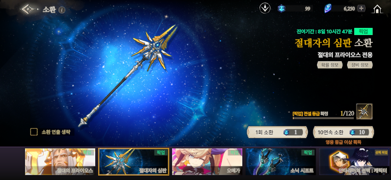 함께 추가된 전설 무기 절대자의 심판은 프라이오스 전용 스태프입니다. 기본 주문력 증가 외에도 ‘심판의 낙인’을 통해 적의 광휘 저항을 감소시키고, 치명타 피해를 더 받게 만드는 강력한 디버프를 겁니다.