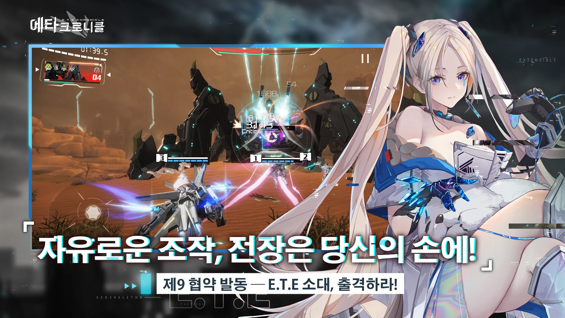 2025년 8월 28일, 모바일과 PC(스팀, DMM GAMES)를 통해 정식으로 등장한 에타 크로니클은 독특한 매력을 지닌 3D 메카 미소녀 전략 RPG입니다. CHENS GLOBAL LIMITED에서 서비스하는 이 작품은 가까운 미래를 배경으로, 거대 기업 ‘노아 테크놀로지’의 지배에 맞서 인류가 개발한 인간형 전투 병기 ‘에타(E.T.E)’와 소녀 파일럿들의 이야기를 다룹니다. 플레이어는 집행관이 되어 이들과 협력하며 전장을 지휘하게 되죠.